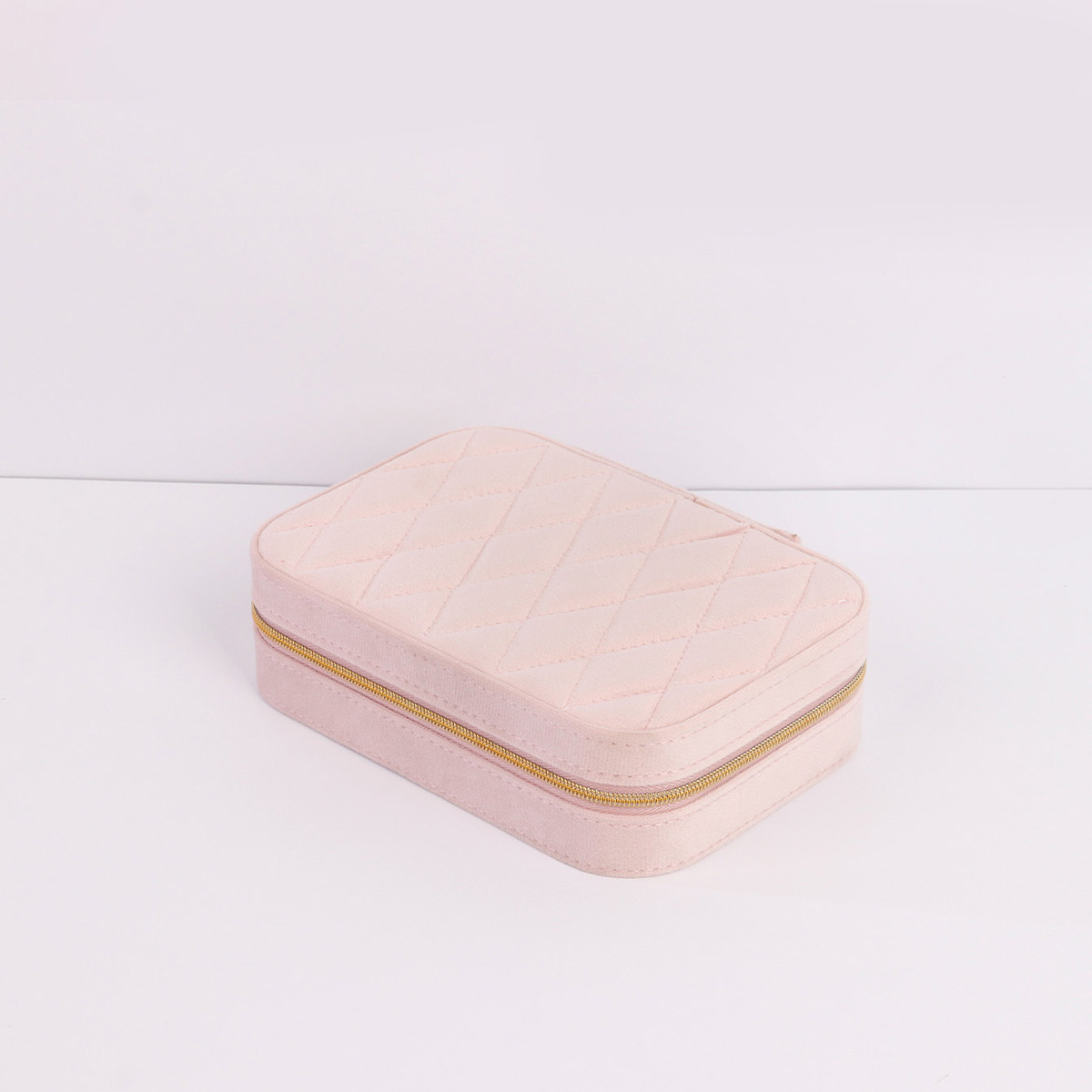 丝绒菱格长方拉链盒16X11X5