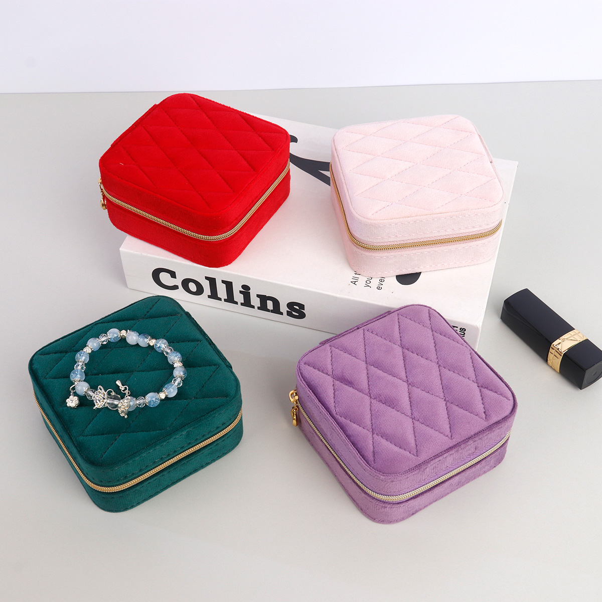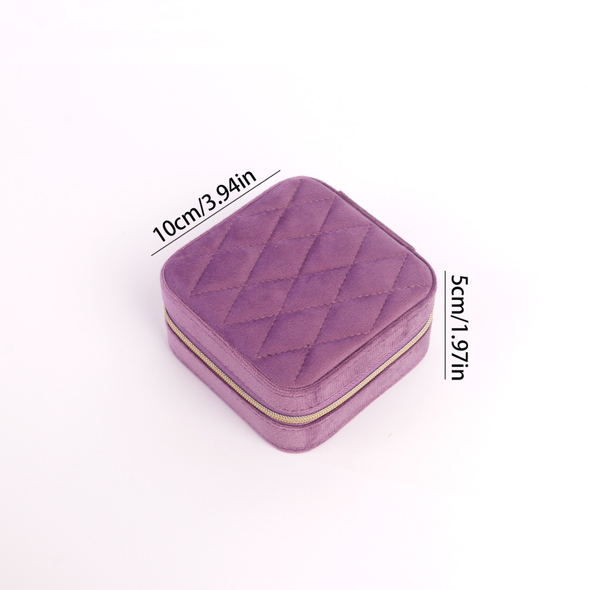 丝绒菱格方形拉链盒10X10X5