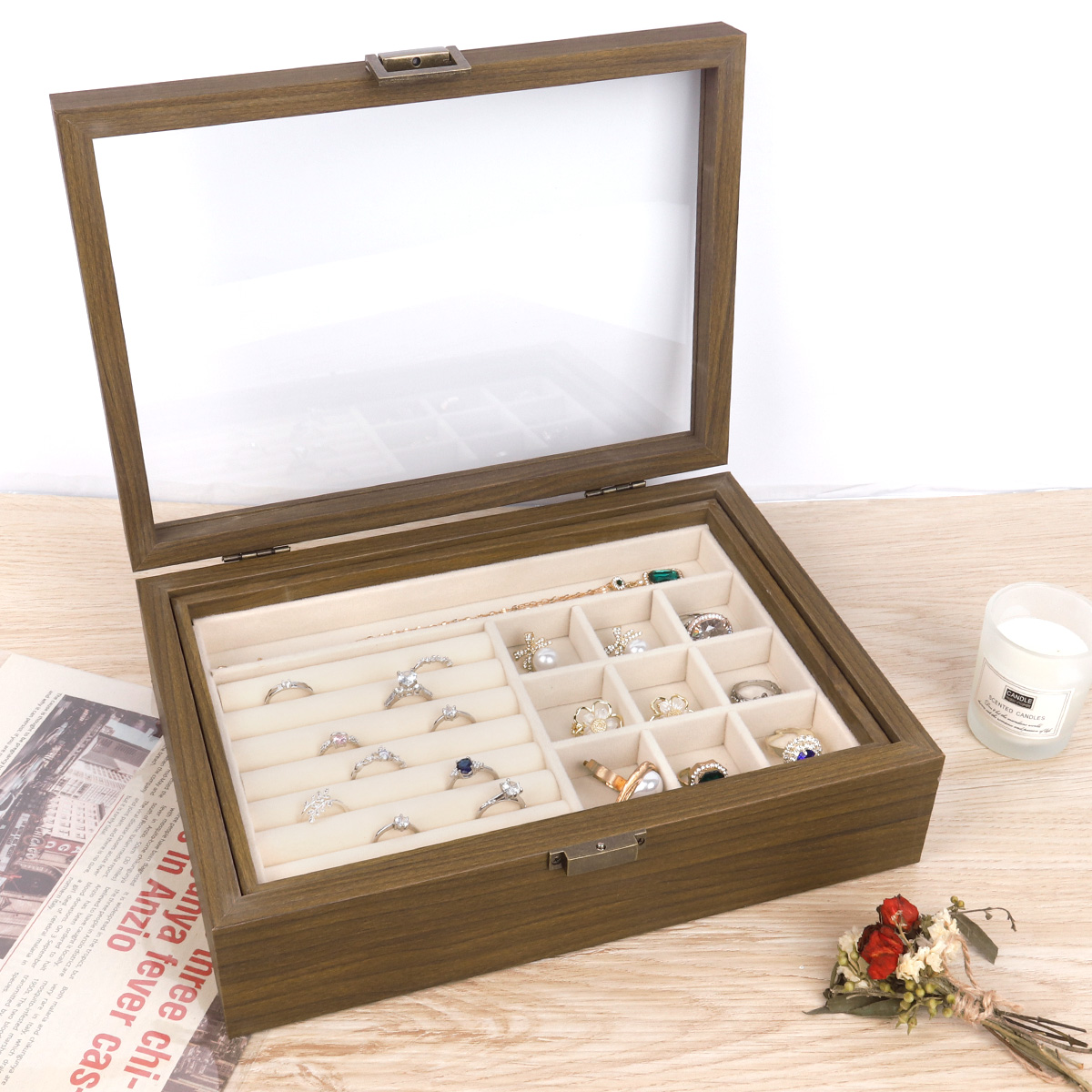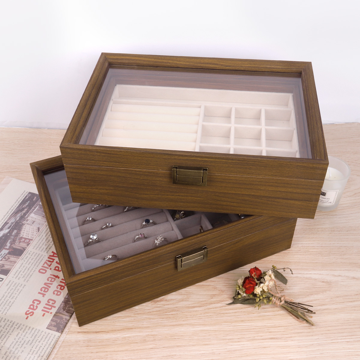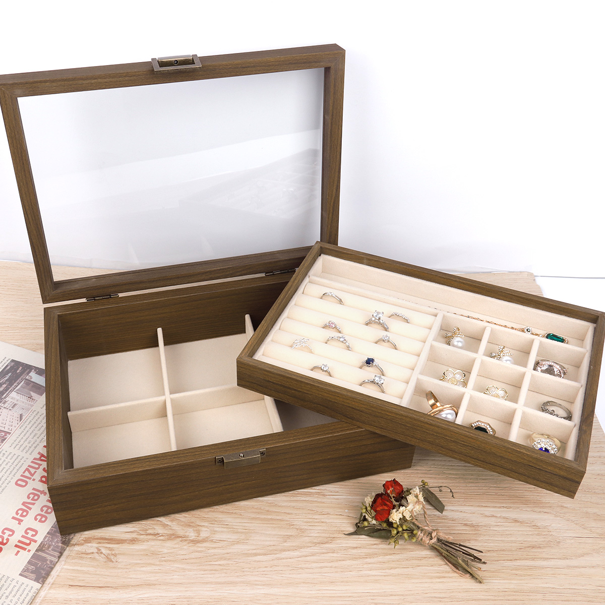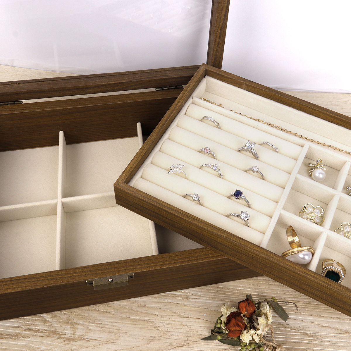 Walnut patterned double-layer jewelry box 28X20X8.6