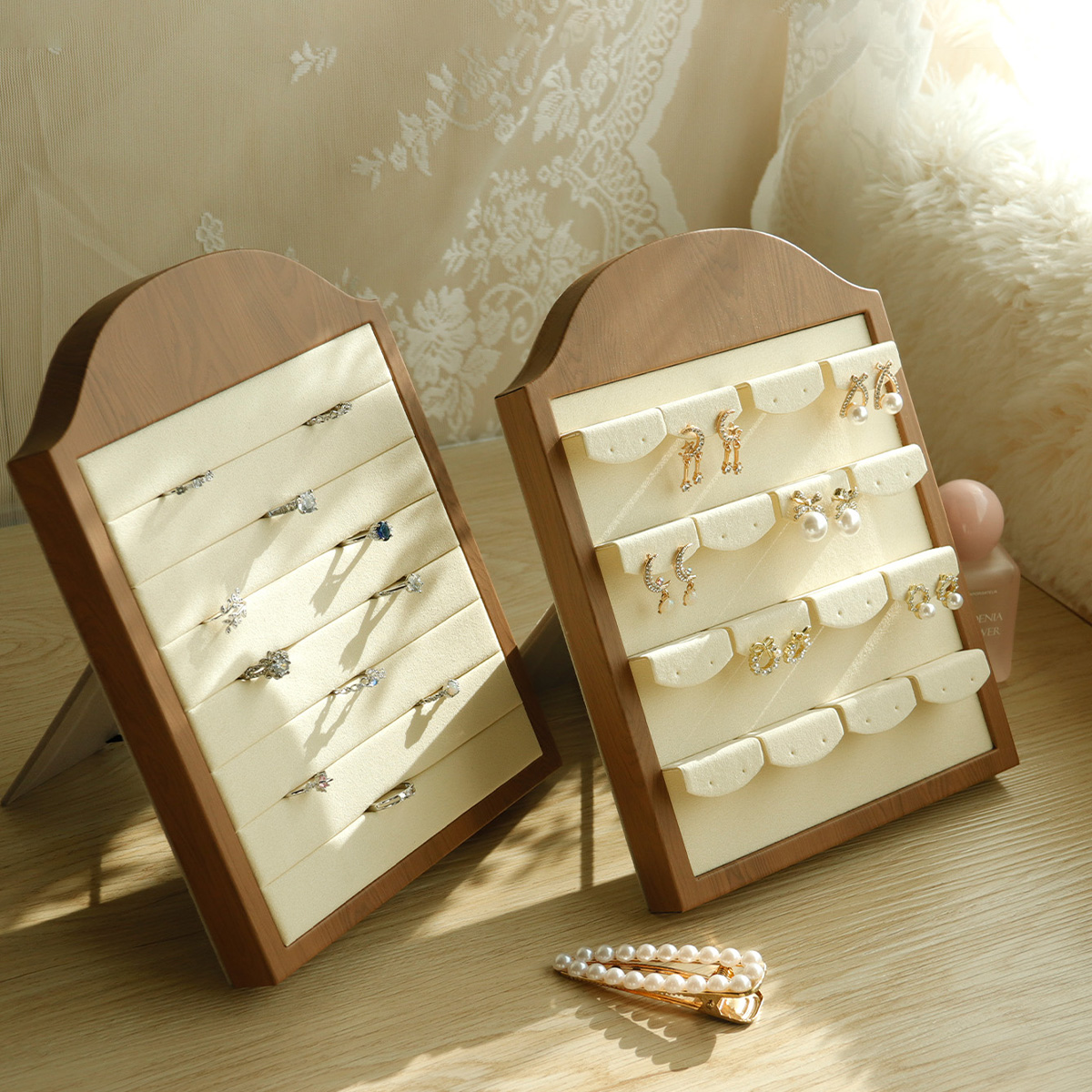 木纹PU弧顶相框首饰架