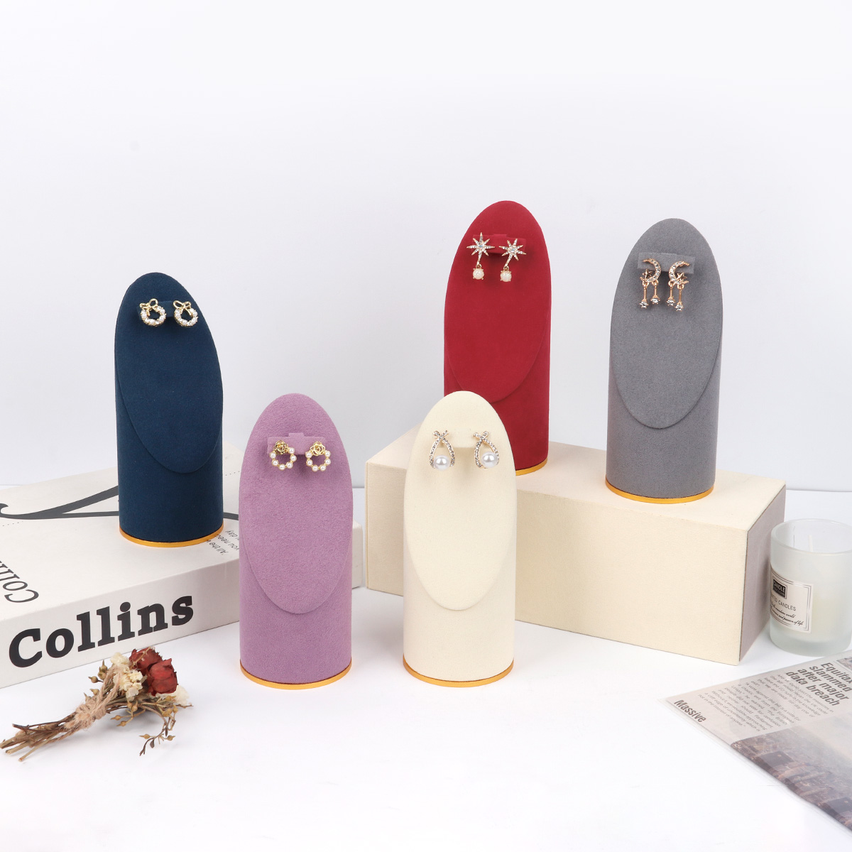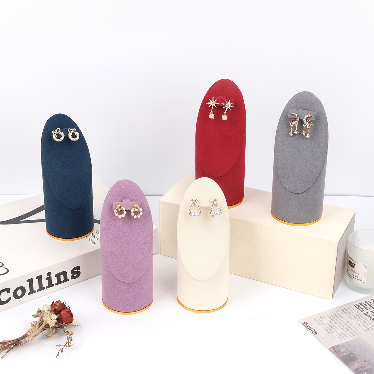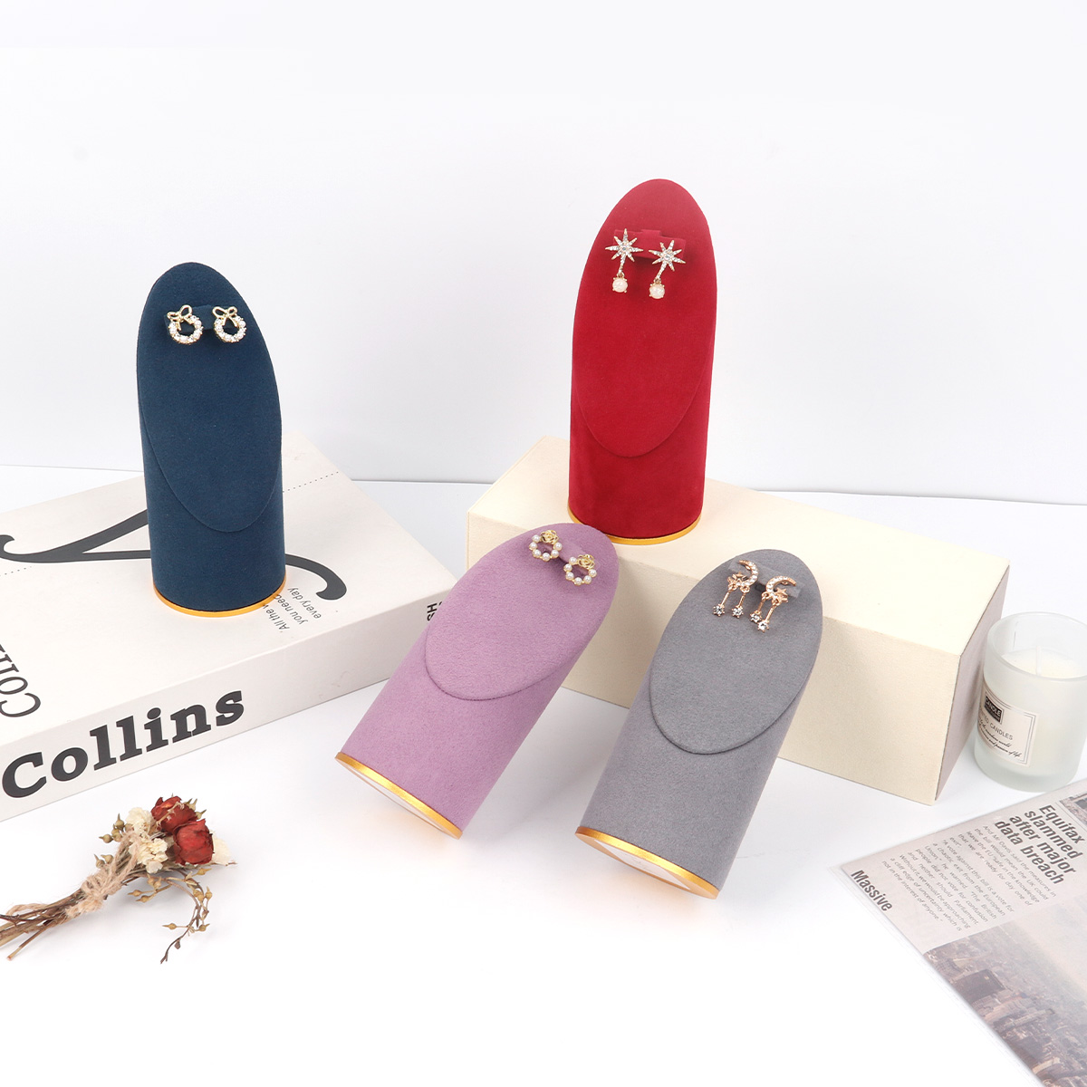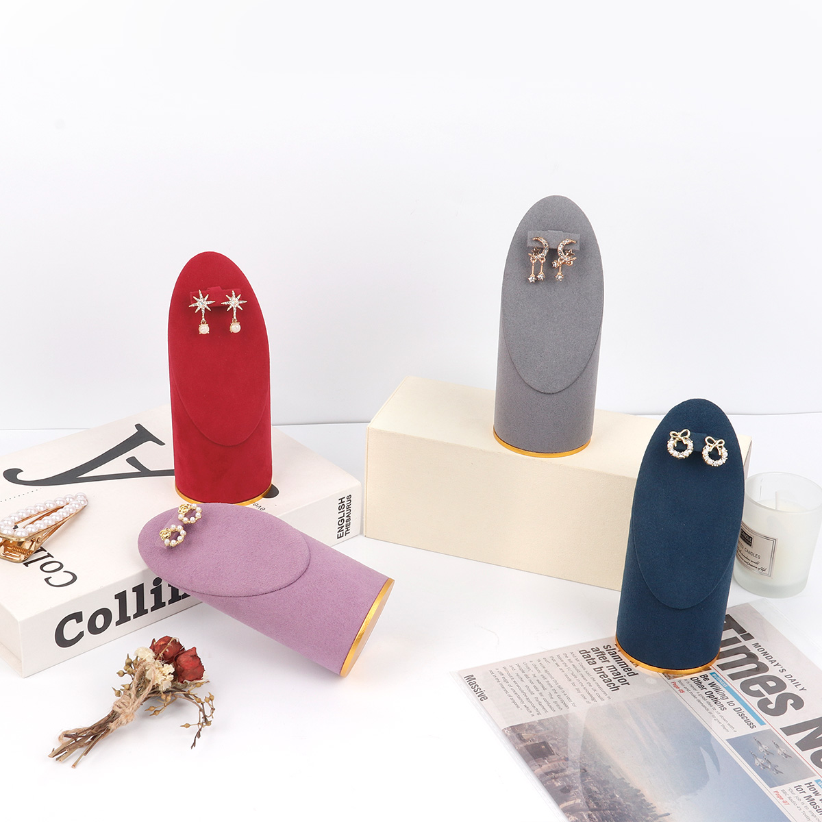 金底超纤圆柱斜面耳环架14.5cm