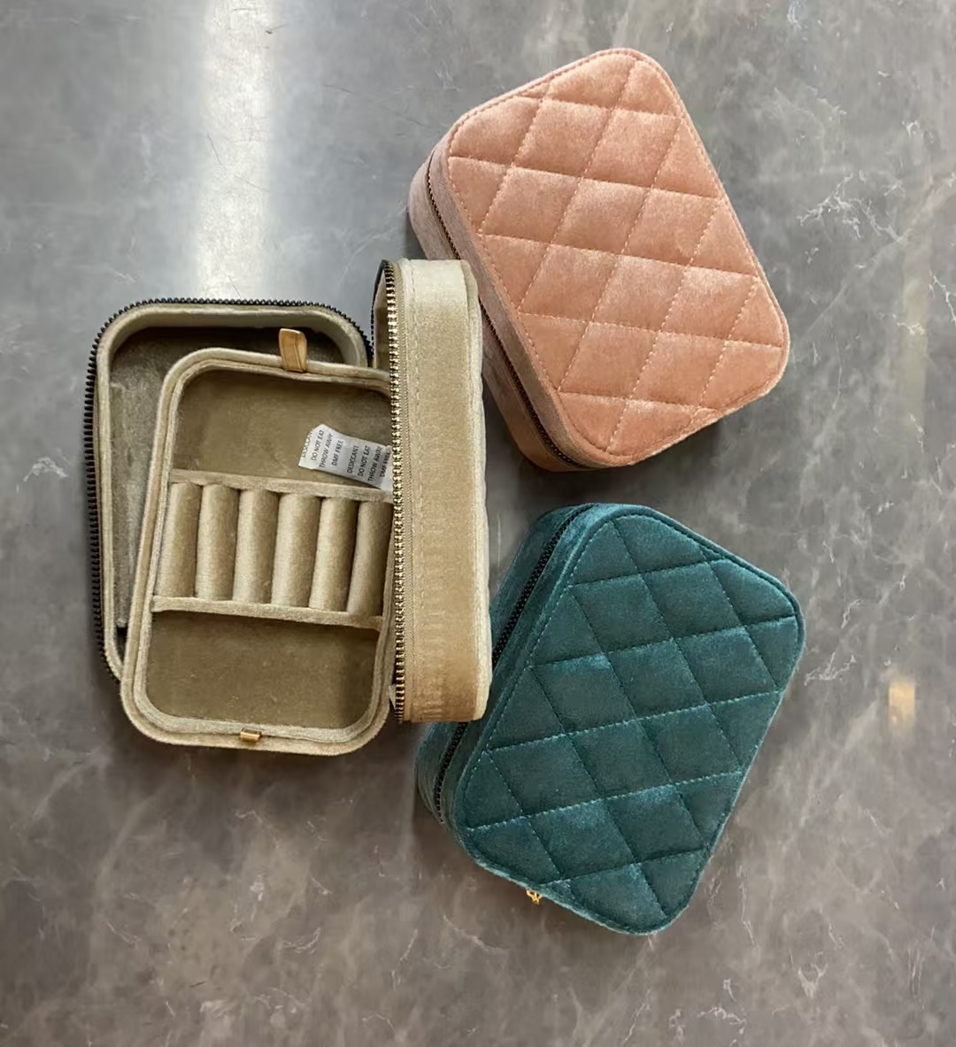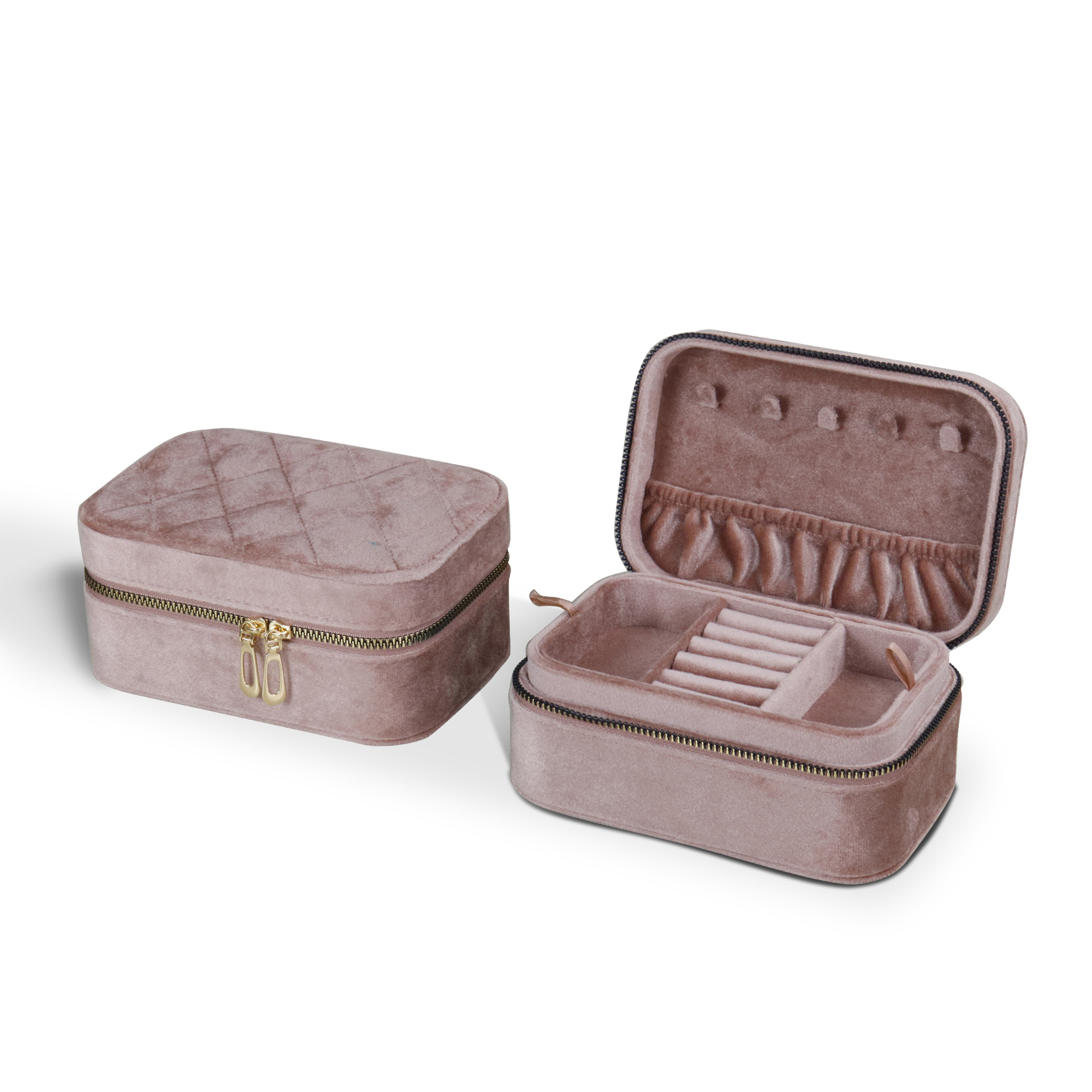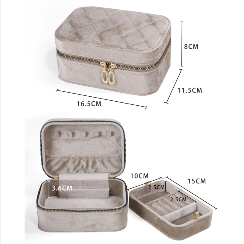 沙粉意绒菱格长方双层拉链盒16.5X11.5X7.5