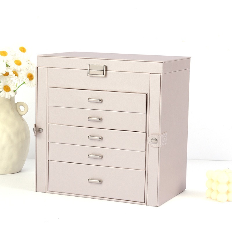 香槟五层抽屉双侧开皮革首饰盒