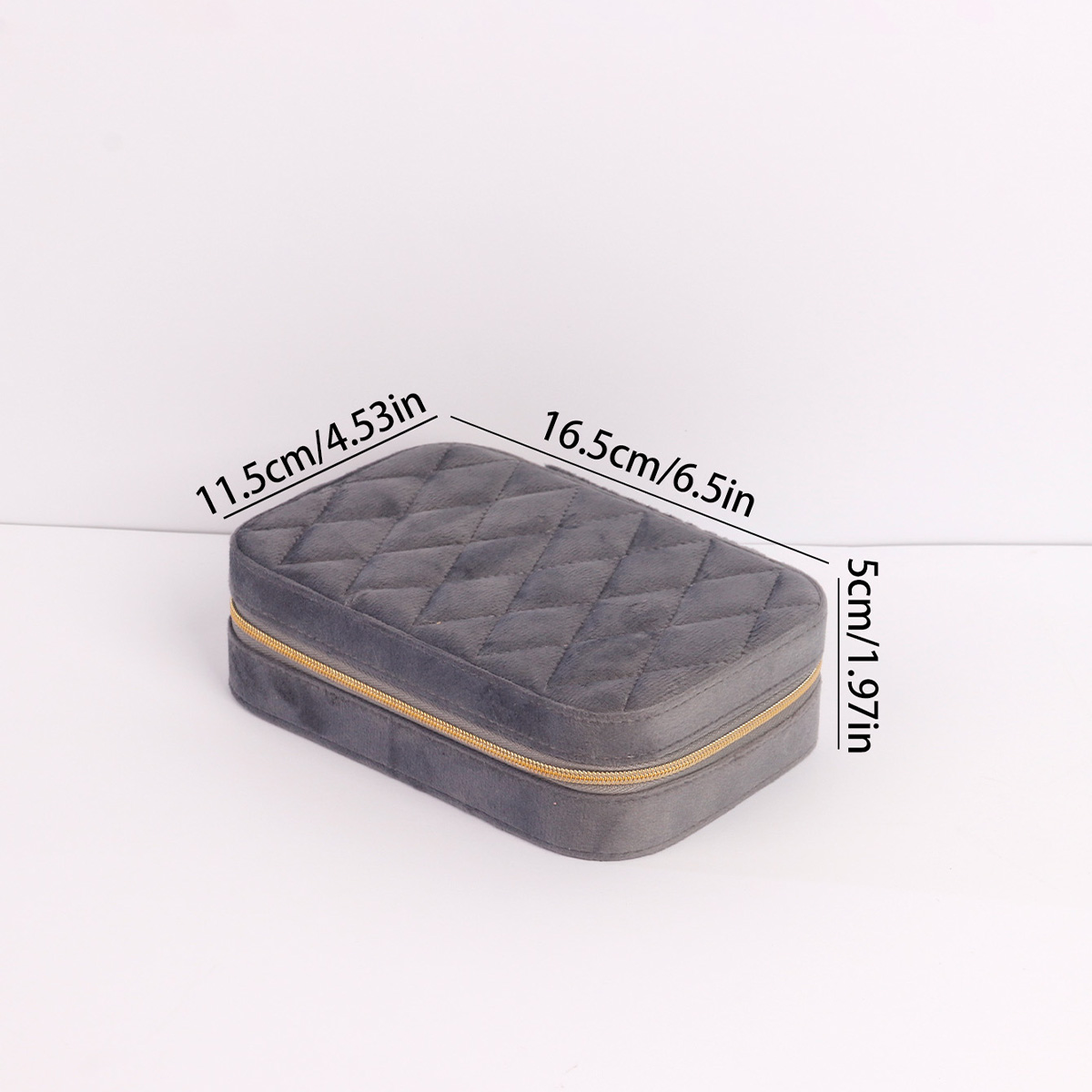 丝绒菱格长方拉链盒16X11X5