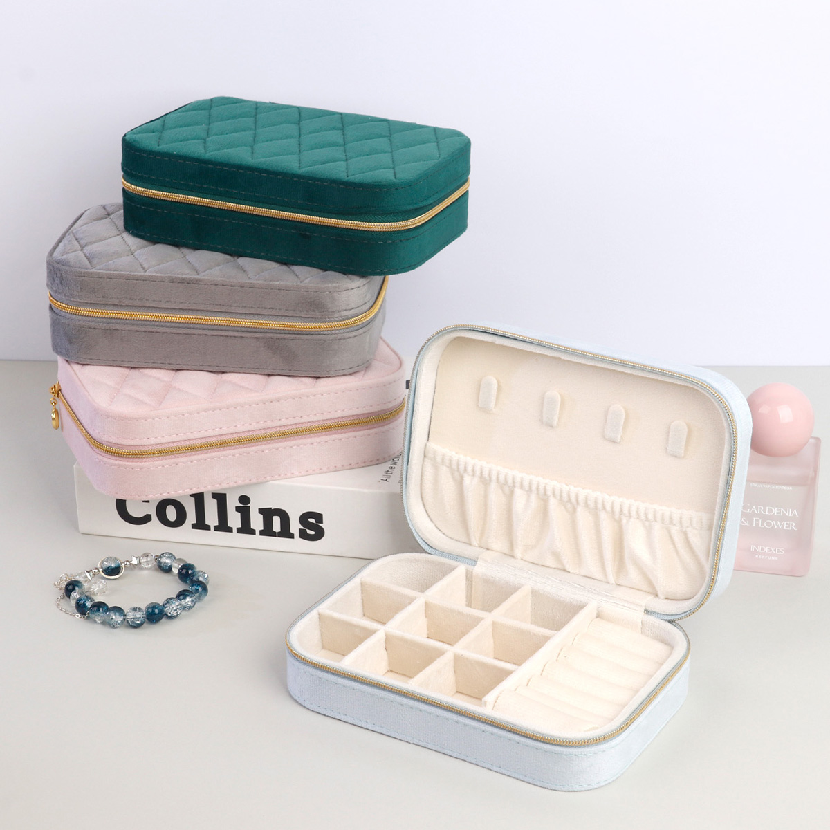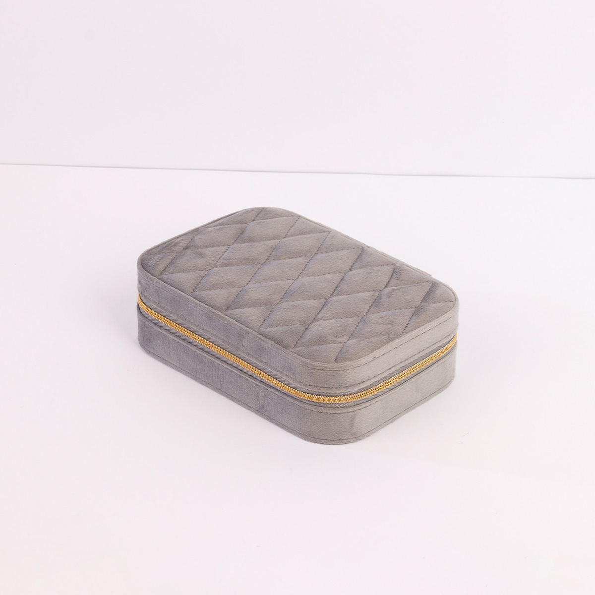 丝绒菱格长方拉链盒16X11X5