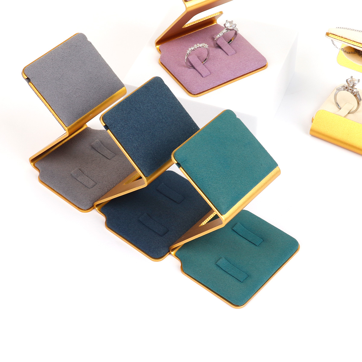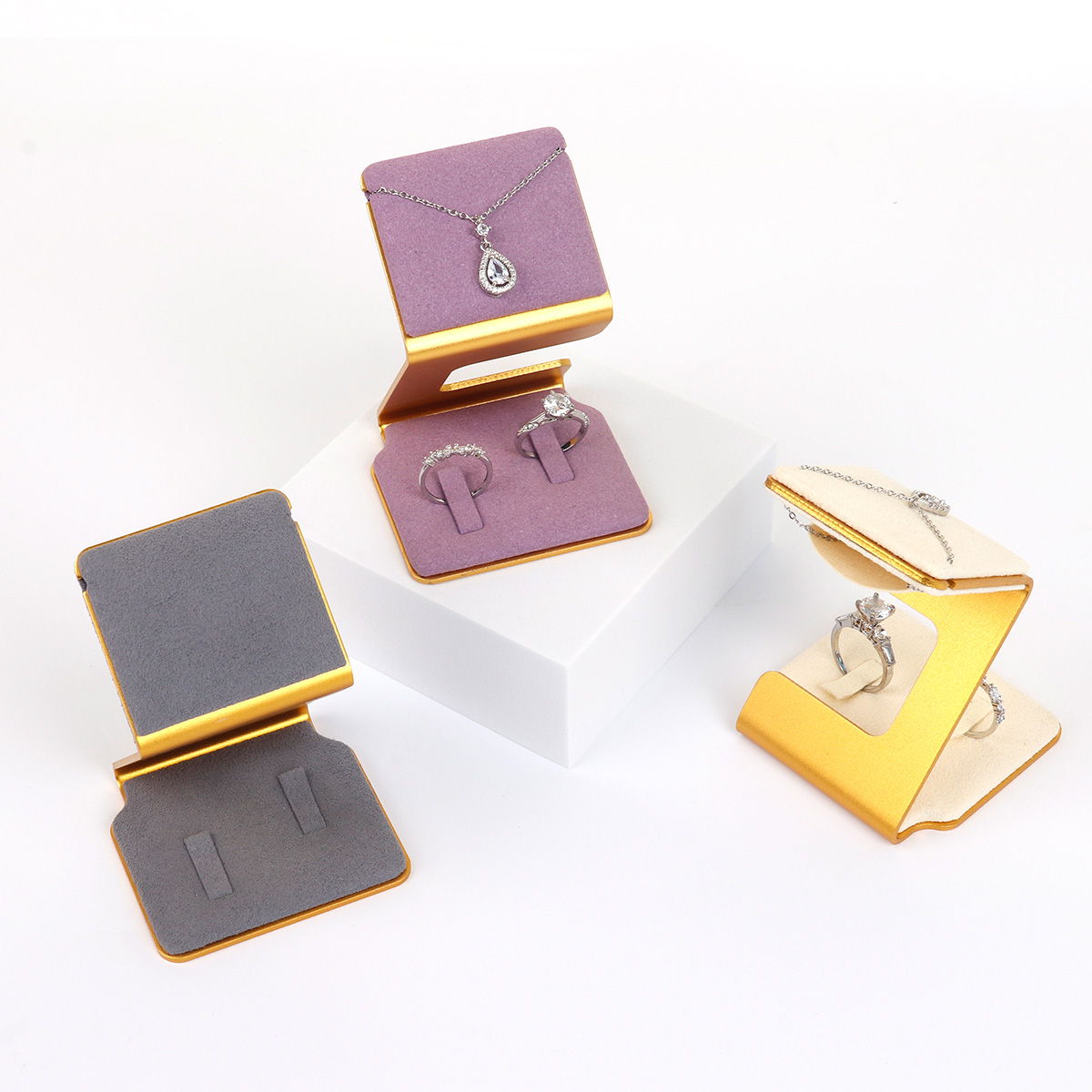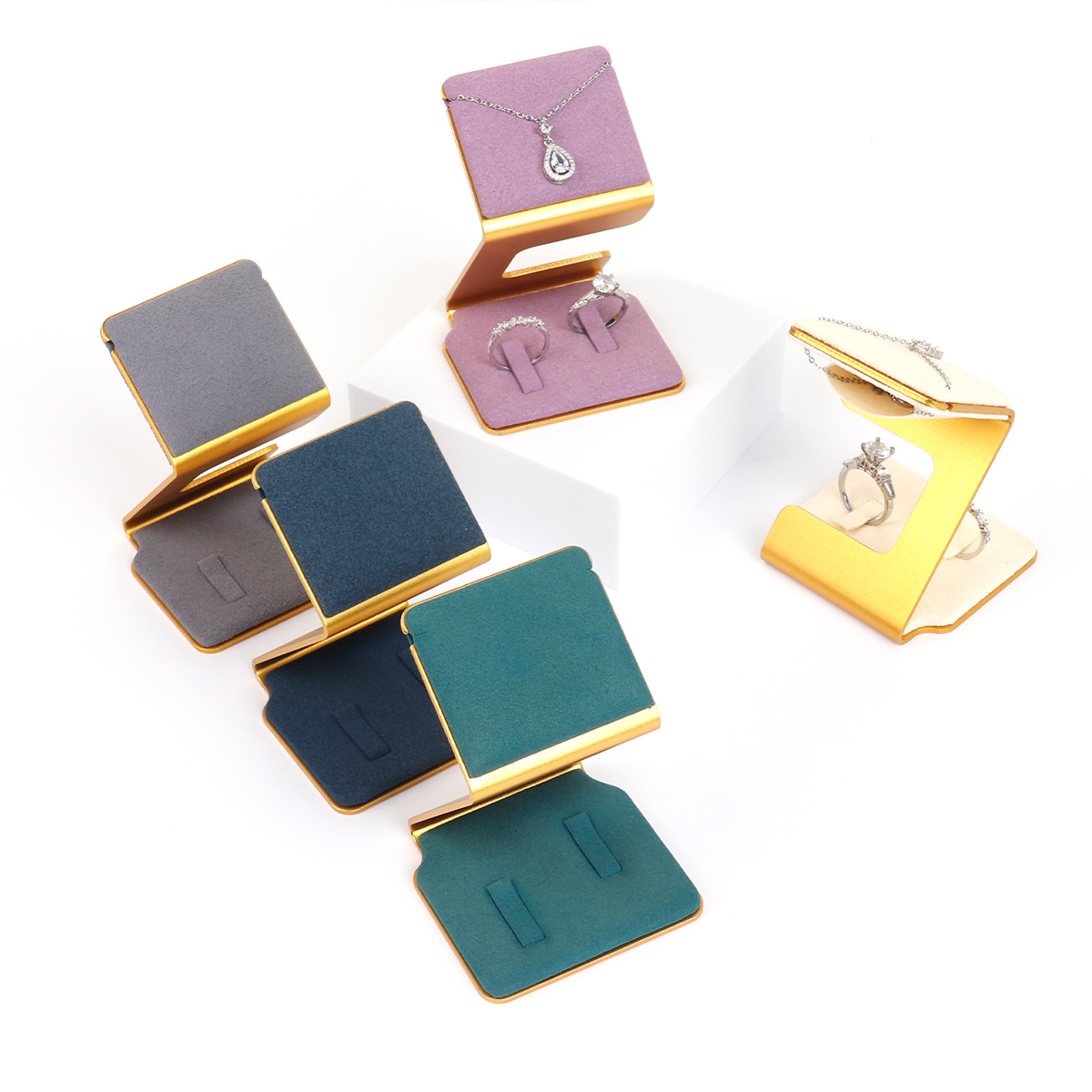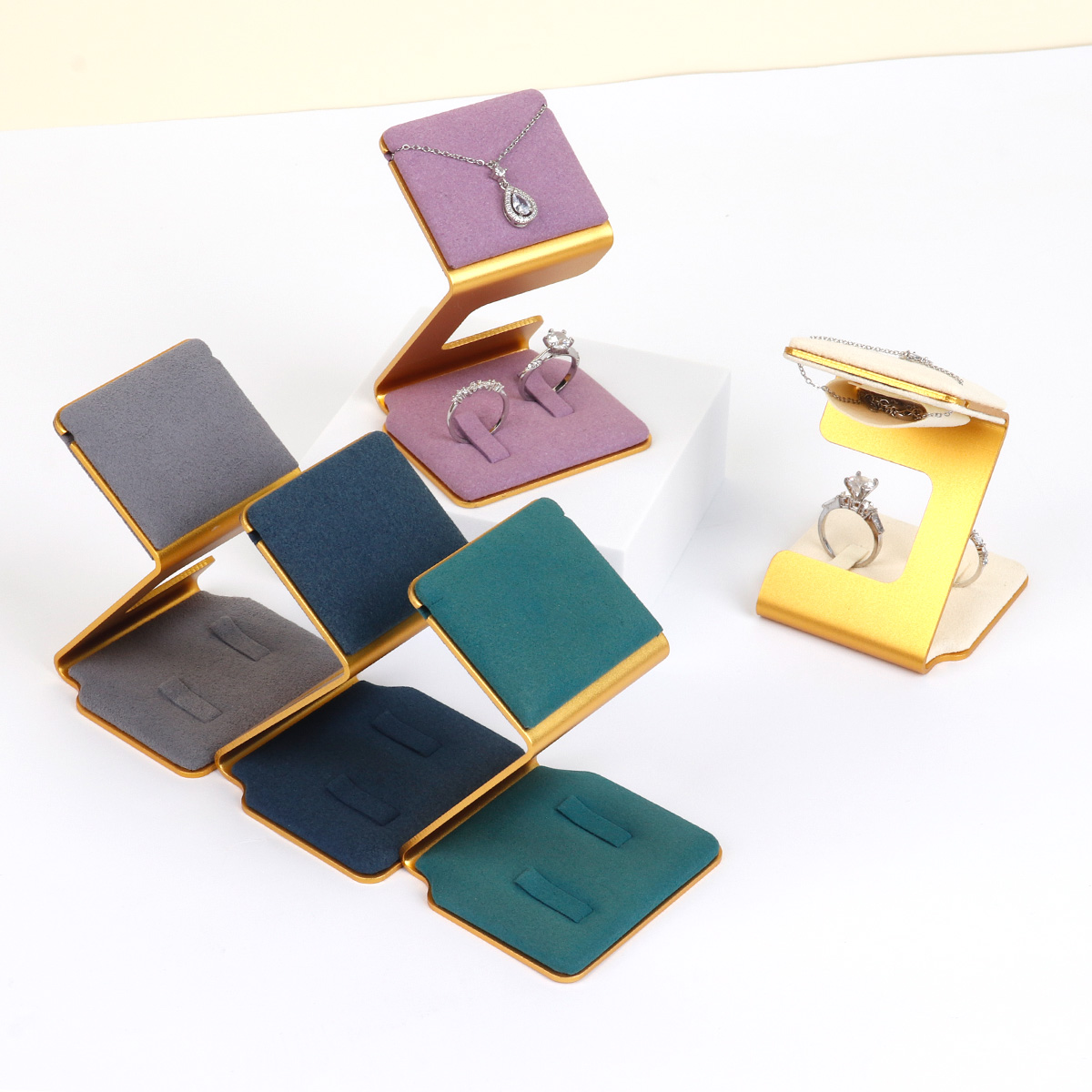 Z字金边超纤戒指项链架