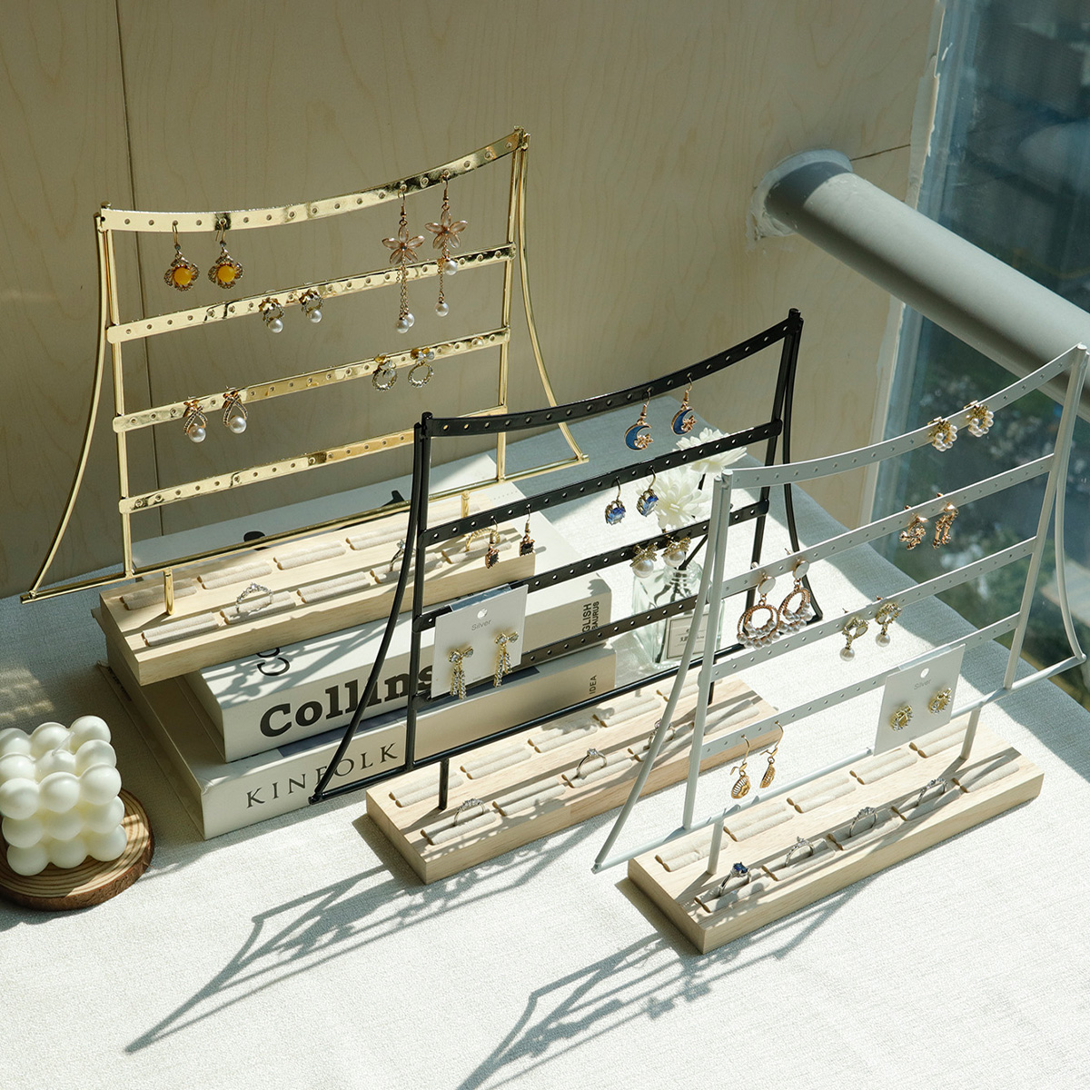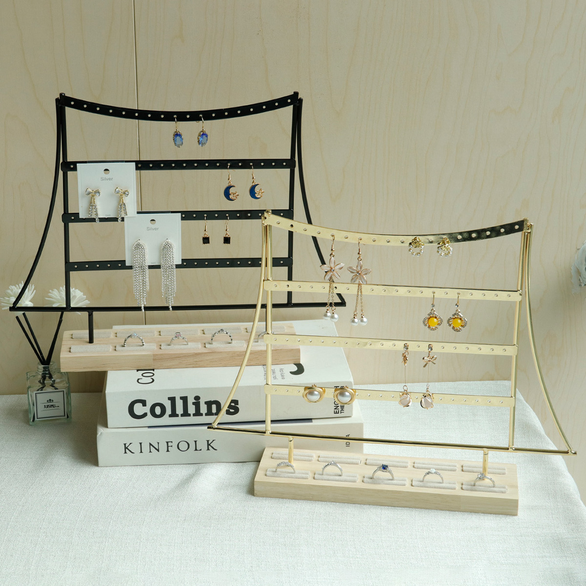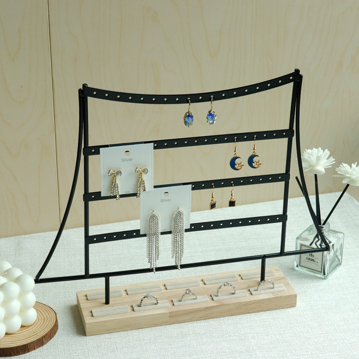 戒指木底帽形四层耳环架黑色