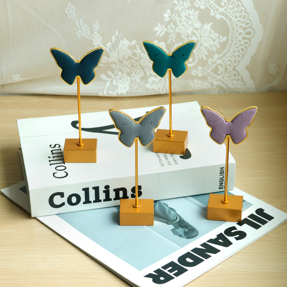 金属超纤蝴蝶方底耳环架