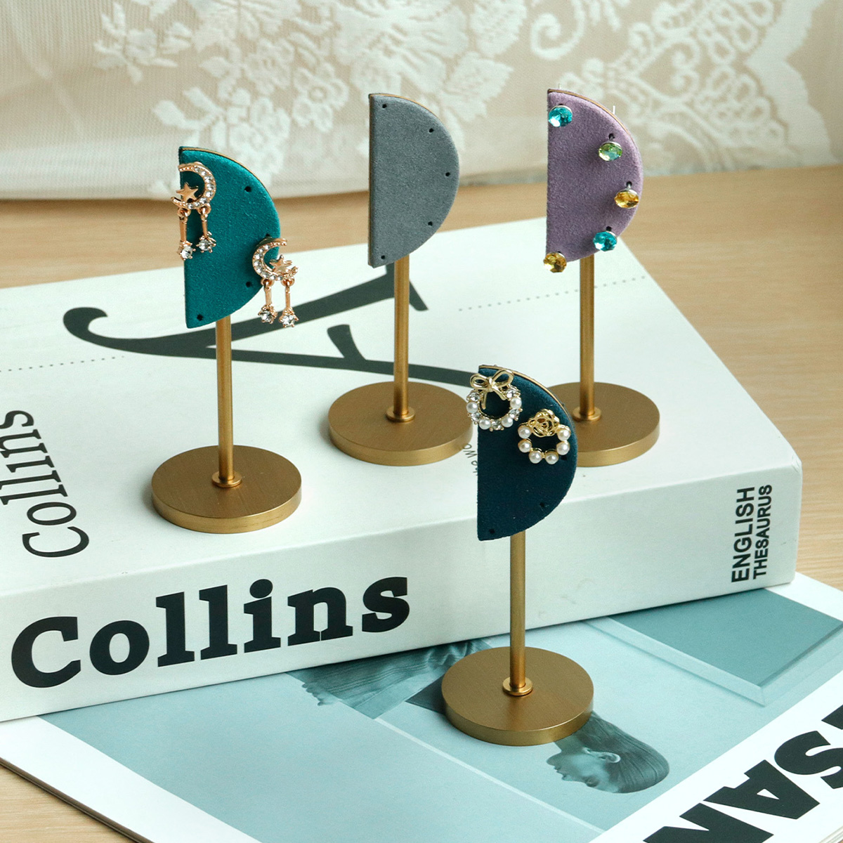 金属圆底半圆耳环架
