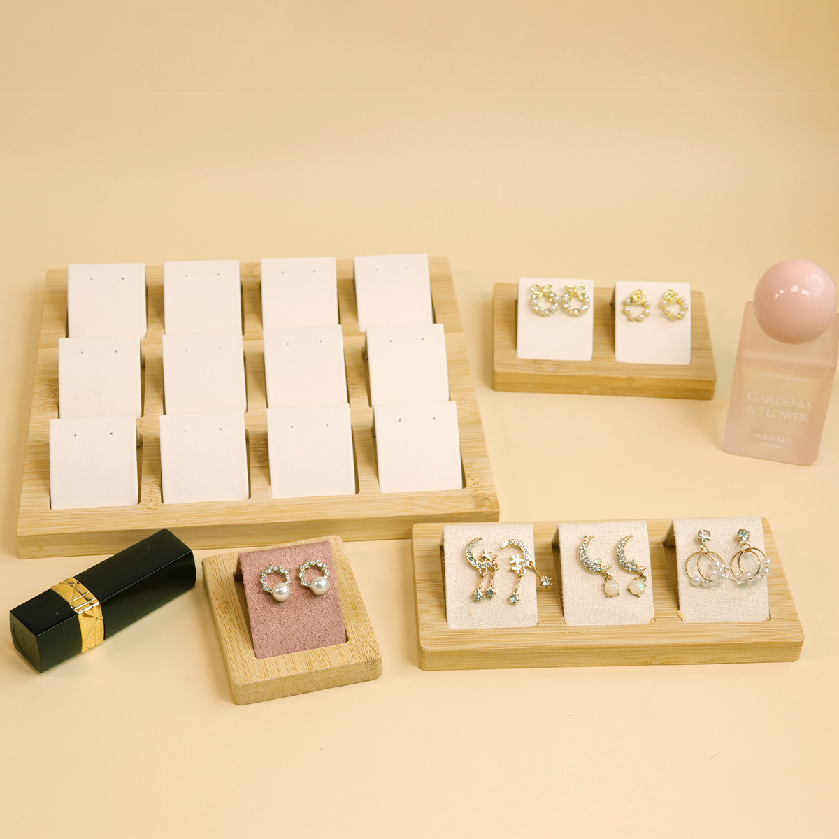 Bamboo and wood earrings and earrings display tray