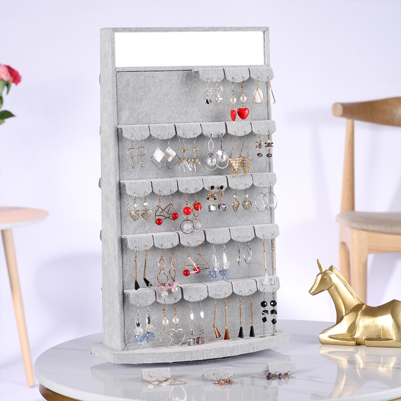 冰灰绒带镜子双面旋转60副耳环架创意耳环架子展示架