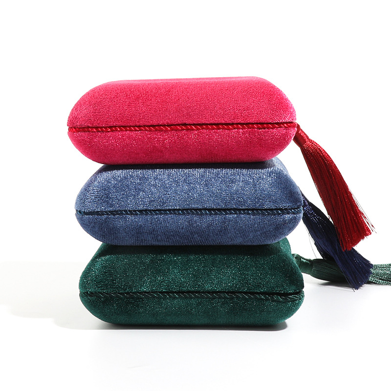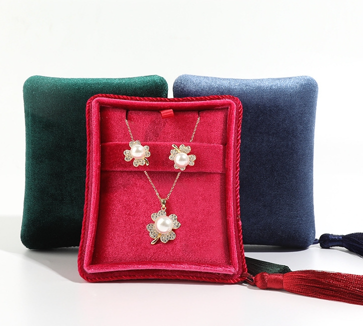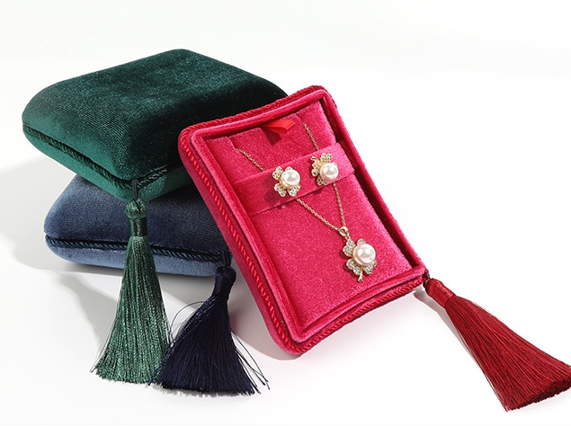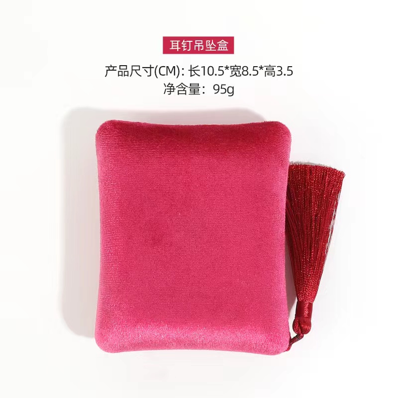 耳钉吊坠盒玫红韩国绒流苏宝盒10.5X8.5X3.5