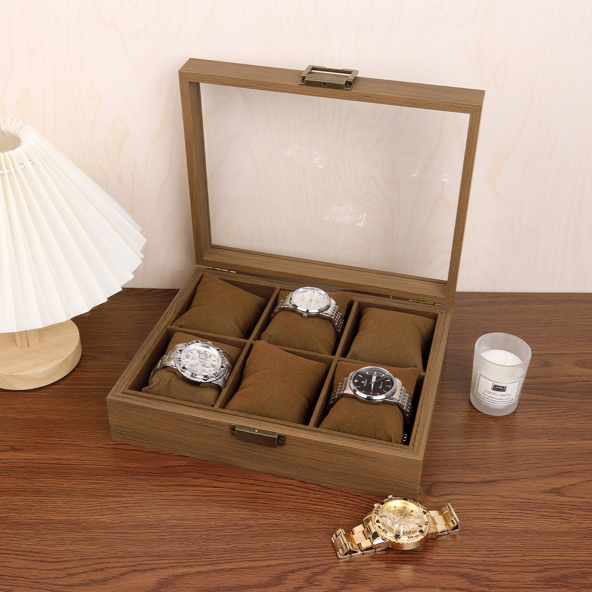 黑胡桃木质开窗表箱 复古锁扣