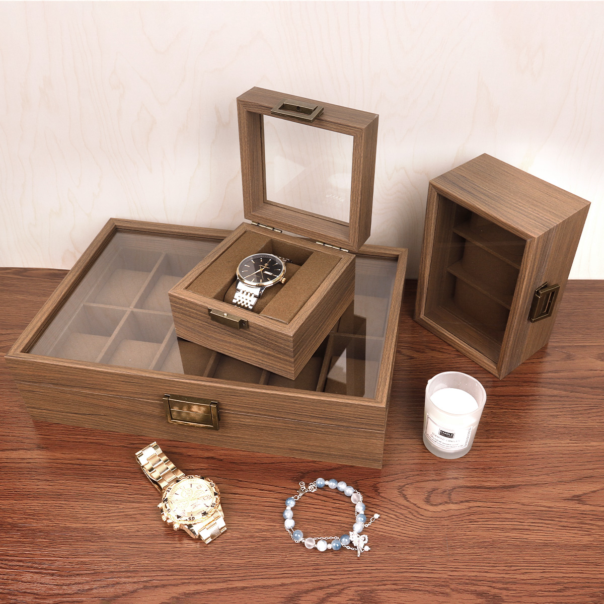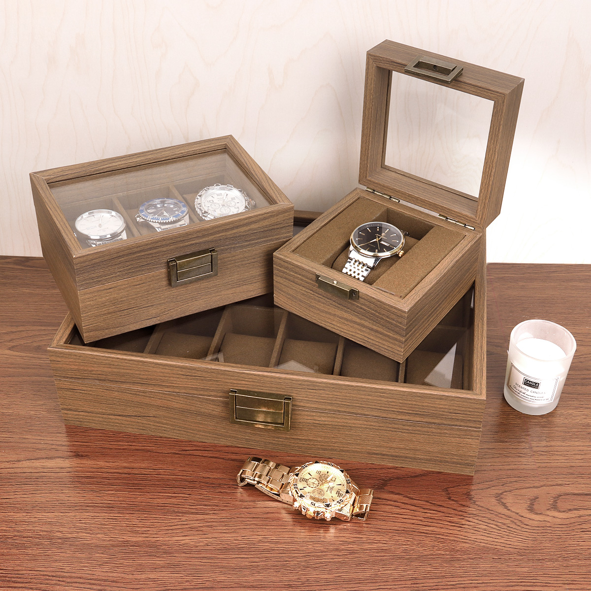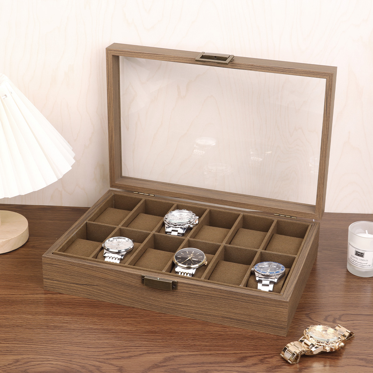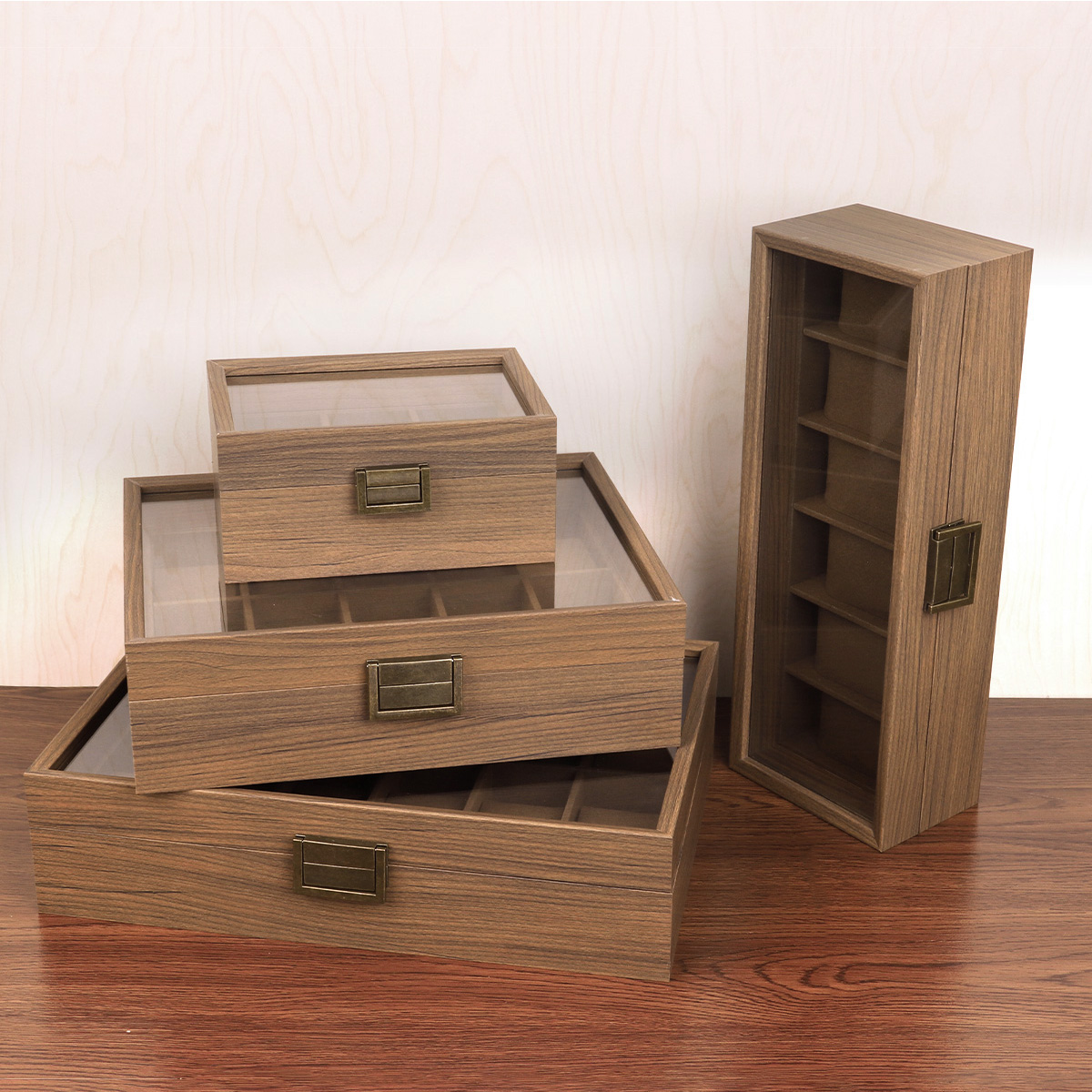 黑胡桃木质开窗表箱 复古锁扣